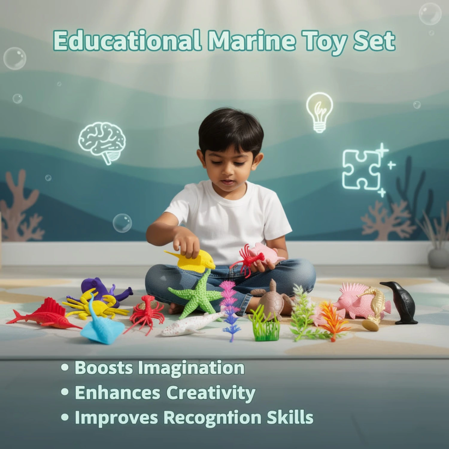 Ultimate Marine Variety: This 17-piece set includes a diverse range of ocean life, allowing children to discover and identify different species of sea creatures.
